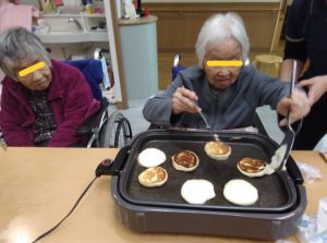 「カフェ」は人々が集まり、会話を楽しんだり、一人で静かに過ごしたりする場所として愛されてきました。 今回さくらユニットでは「カフェ」を開催させていただきました。 皆で雑談するのも良し。一人で気兼ねなくゆっくり過ごすの良し。利用者様のお好みのスタイルに合わせて楽しんでいただきました。 さくらユニット担当の介護福祉士さんと利用者様の共同作業でカフェ店の中でも一番人気メニューである イチゴパンケーキを作り皆で美味しく頂きました。
