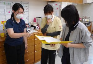 看護師さんは介護福祉士さんと協力し合いながら入居者様が日々元気で過ごして 頂けるように健康管理に努めています。