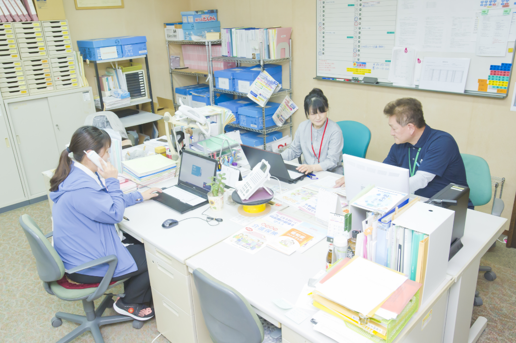 事業所には介護支援専門員(ケアマネージャー)を配置し、要介護者の依頼を受けて、要介護者や家族の希望等を考慮した介護支援計画(ケアプラン)を作成したり、その他介護に関する専門的な相談に応じます。